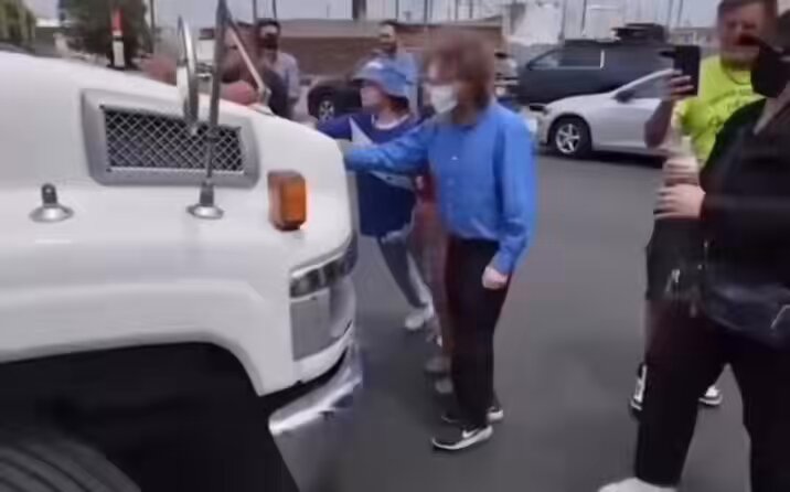 We seriously need to open up mental hospitals again. How are people this brainwashed? Does being a paid protester pay enough to risk getting crushed by a truck? Being a paid protester should result in everyone being thrown in jail. This is just disruption without a purpose.