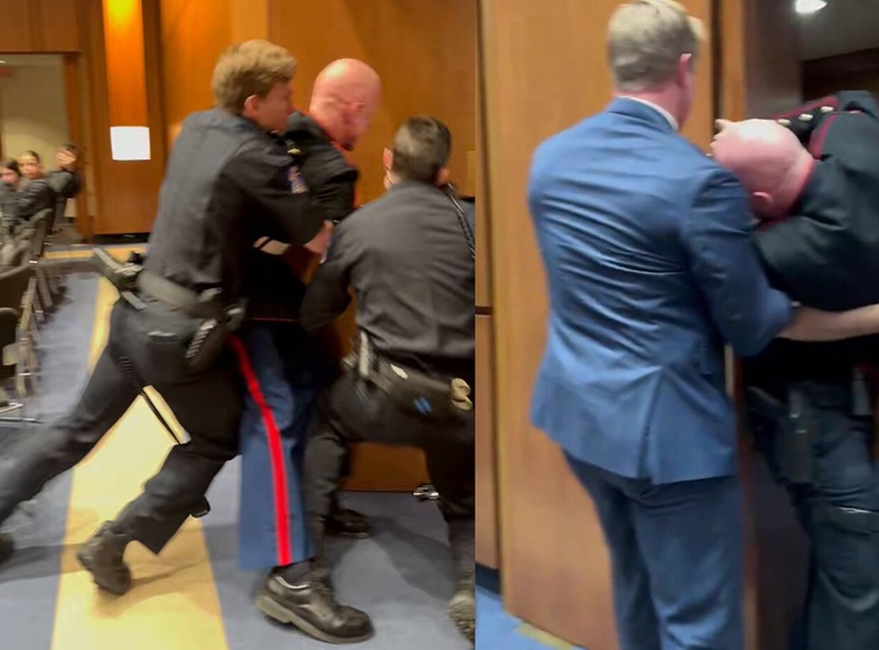 US Senator and Navy SEAL Tim Sheehy helped Capitol Police remove a man aggressively interrupting a Senate hearing. Oops, the arm snapped.