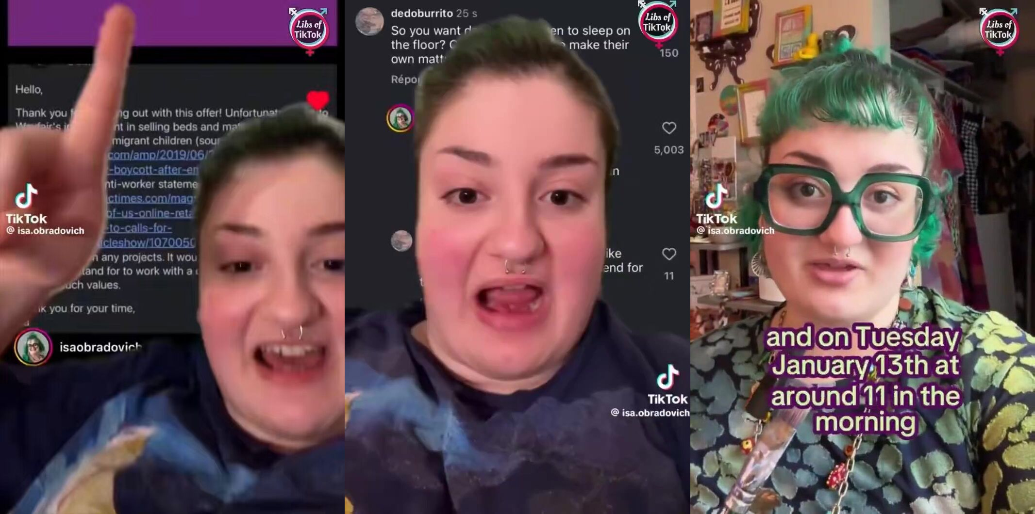 Isa Obradovich, a student at Miami University in Ohio who was teaching at a local school, says she was removed from the classroom after posting a video calling for a boycott of Wayfair for supplying beds to ICE and telling ICE to kill themselves.